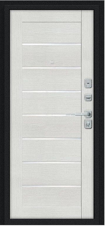 Дверь Браво Техно/BChrome Букле черное/Bianco Melinga - недорогая эконом класса по цене 4 199 руб., отлично подходит для временной установки в квартиру под сдачу, строительство, ремонт. Не смотря стоимость, модель хорошего качества.
