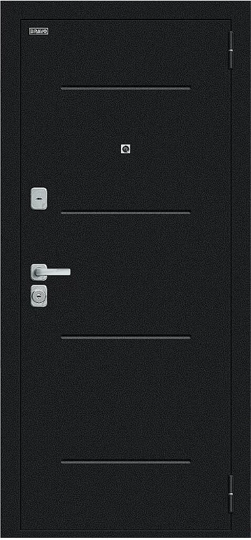 Надежная входная Дверь Браво Техно/BChrome Букле черное/Wenge Melinga премиум класса по цене 34 699 руб. Большая толщина стали защитит от проникновения в ваш дом, квартиру или коттедж. Используется очень качественная фурнитура: замки, цилиндры, ручки, защелки. Покрытие и отделка двери изготовлено под внимательным контролем производителя. Дверь имеет долгий срок службы и гарантию.